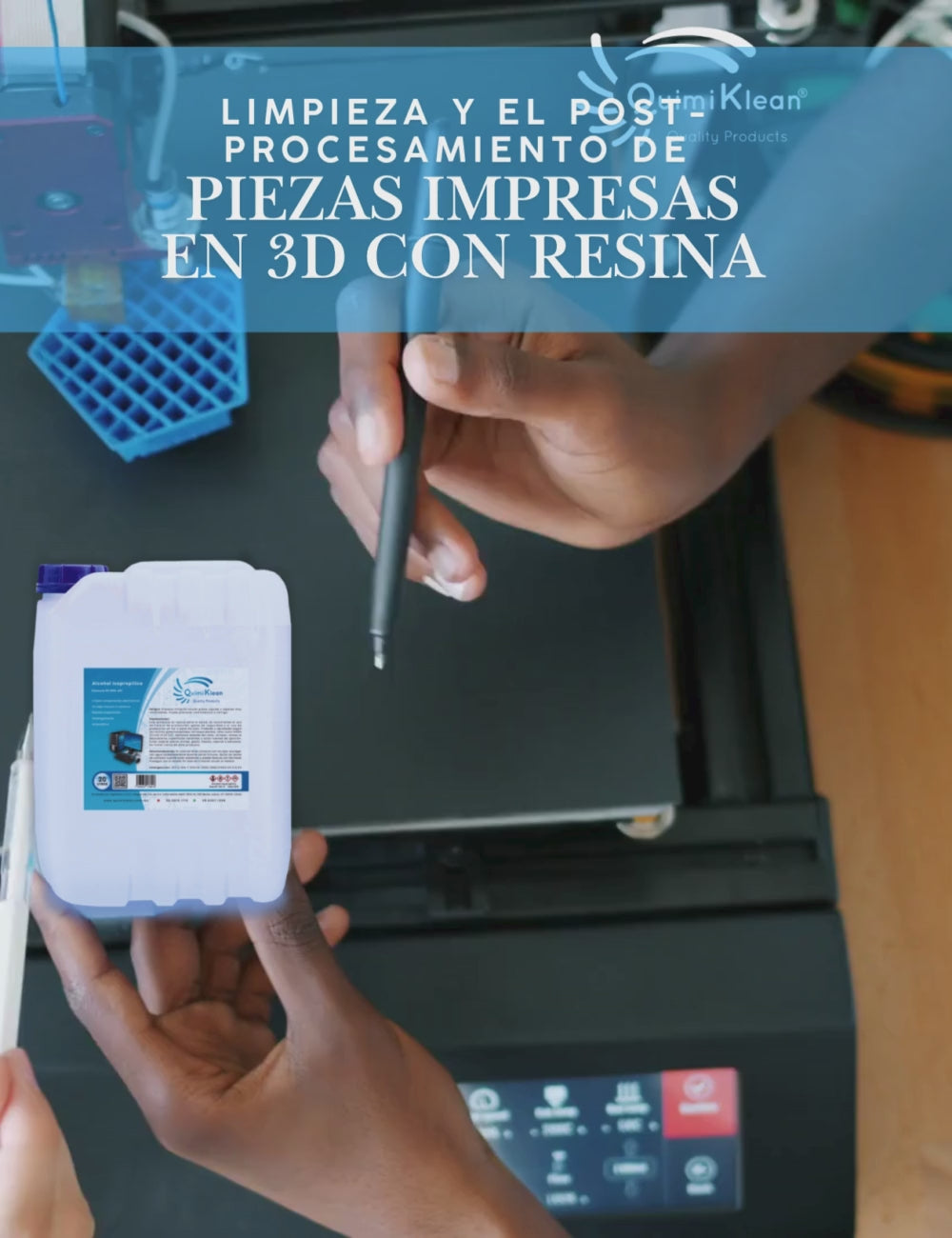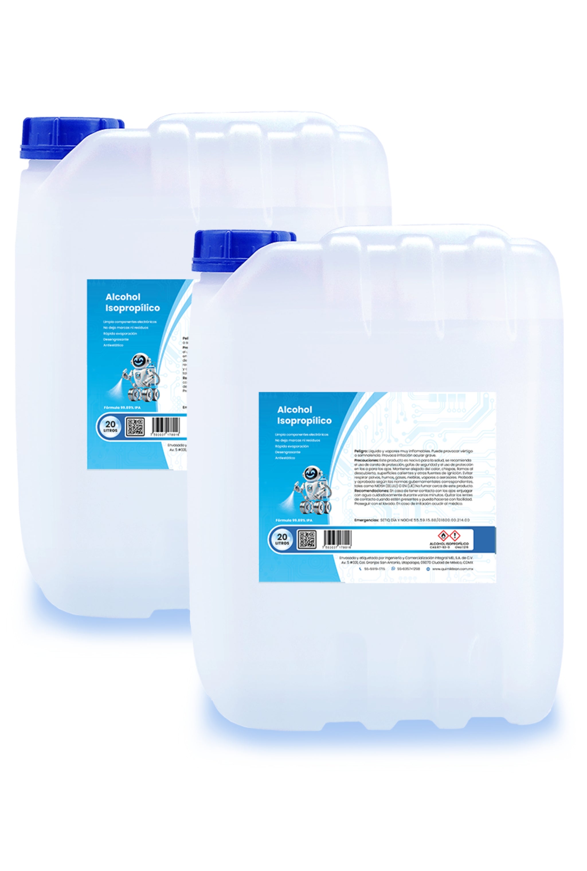 La presentación de 20 litros en garrafa está diseñada para altos volúmenes de consumo en laboratorios, talleres, hospitales, industrias tecnológicas, gráficas y de impresión 3D.