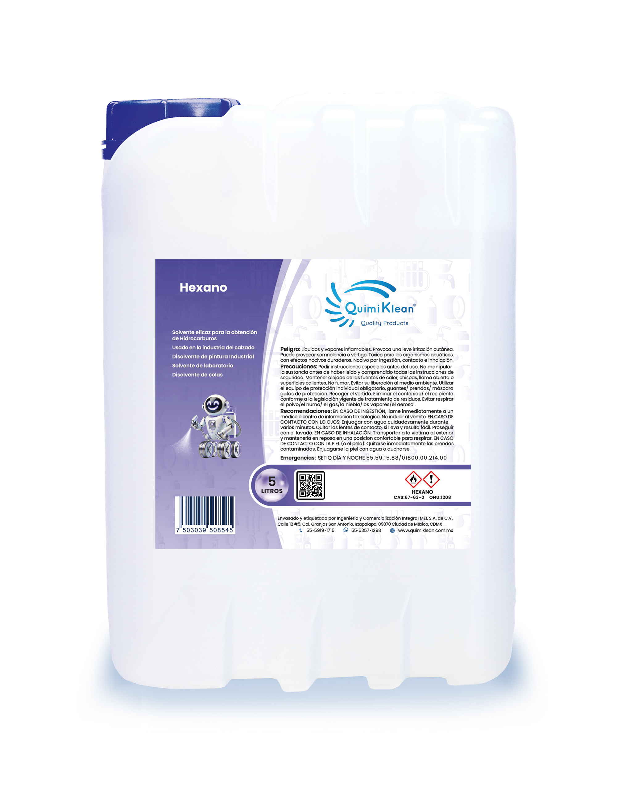 Utilizado ampliamente en los sectores químico, automotriz, alimentario, farmacéutico y metalmecánico, el Hexano QuimiKlean garantiza un secado uniforme sin residuos, con la calidad y control que caracterizan a todos los productos de QuimiKlean.